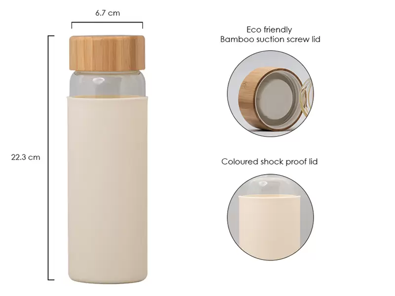 The fashionable eco-warrior is armed to the teeth- with eco-friendly, biodegradable essentials. Keep your hydration needs met, without harming the turtles, with this 600ml eco-friendly borosilicate glass water bottle with shock resistant eco-friendly sleeve. It has a wide mouth covered by an eco-friendly bamboo screw lid. An ideal choice for corporate gifting to employees or event giveaways