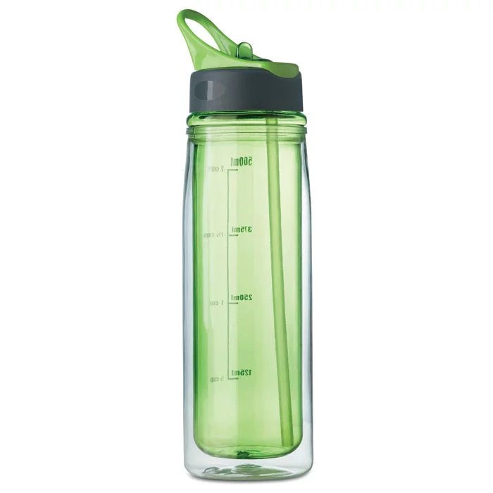 550 ml double wall drinking bottle in Tritan which is BPA free including foldable mouthpiece on the lid.