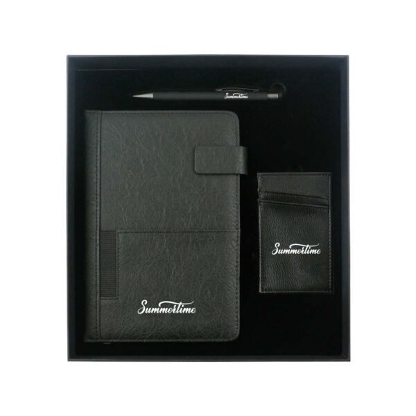 These corporate leather gift sets consisting of a notebook, card holder, and pen is a classic and practical choice. Here’s a breakdown of each item and why they make a great combination: